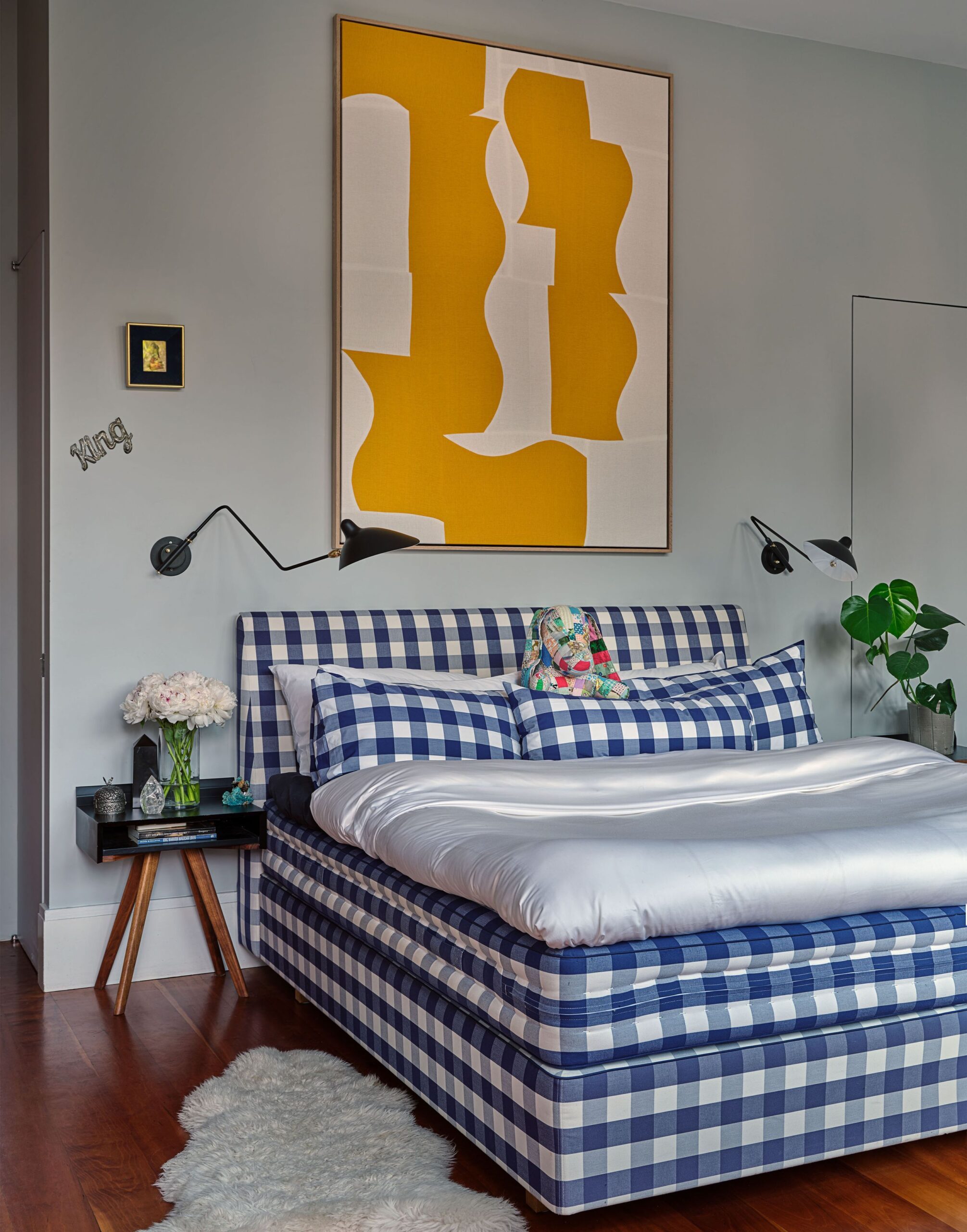 But you don’t have to live in a farmhouse to incorporate the gingham pattern into your bedroom decor. When you pair the bedding set with scalloped detail or floral motifs, it adds just the right amount of visual interest. Blue gingham in particular, can skew into coastal decor, especially if you add a percale cotton duvet cover into the mix.
