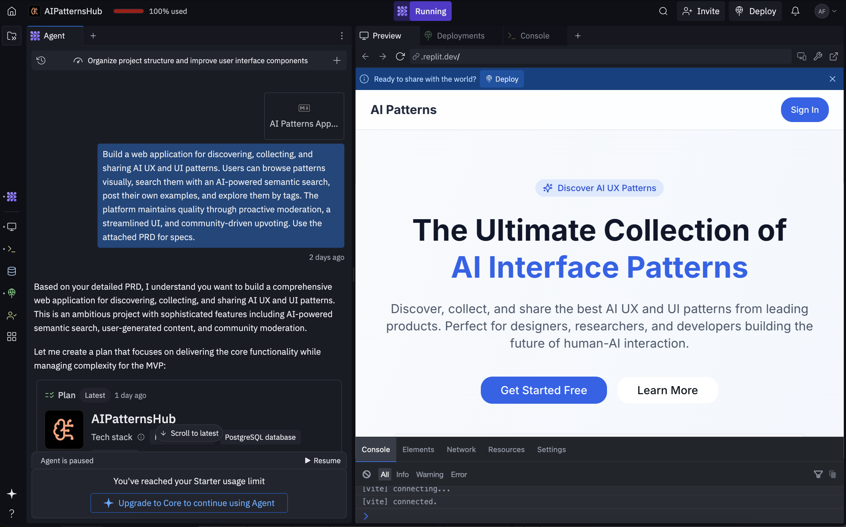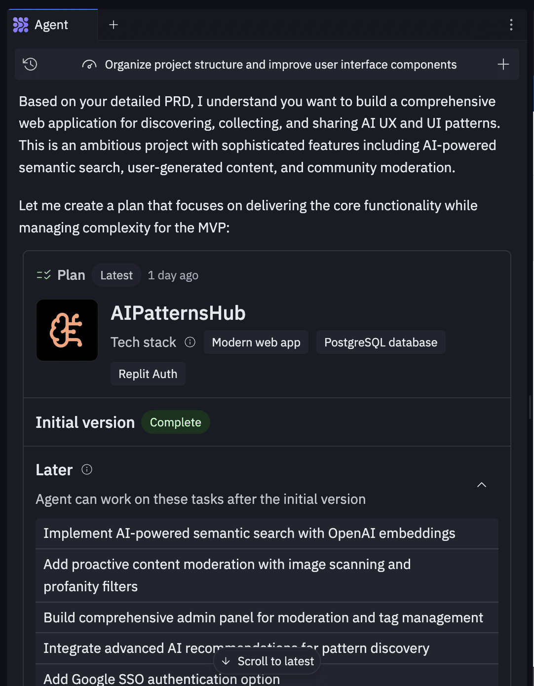 Waited for the magic moment: Replit didn’t just code blindly — it prioritized my features. It built a clear MVP, established foundational functionality, and smartly deferred secondary features. It even paused to ask for feedback before moving forward.