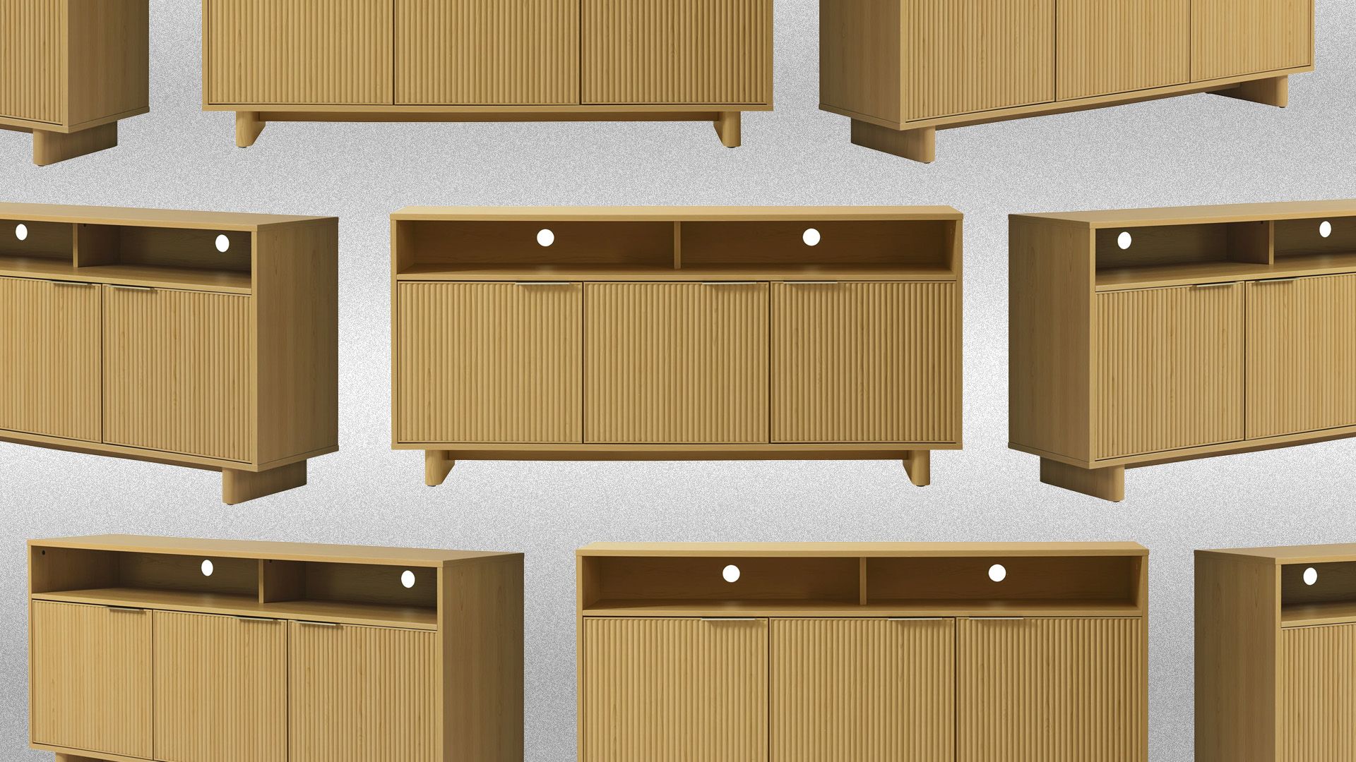 **The details:** The Better Homes & Gardens Lillian Fluted TV Stand is an affordable yet stylish collaboration that launched in 2008, with offerings that span various home categories like bath, bedding, and even home fragrance. You’ll find, though, that the largest portion of their available products are for the living room. With an inventory that includes different shelving, various chairs, and entertainment staples, the line’s Lillian TV stand jazzes up a furniture piece that all too often prioritizes overly functional, clunky silhouettes. (While still exceeding storage space expectations, no less.)