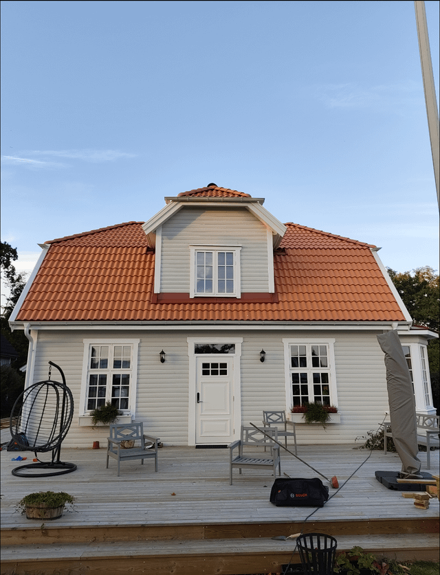 I’m also looking for an old half circle window to put there, purely as decoration. The reason it looks like it does is that electricity used to come in there when it was built, without that it just looks like the house has a big forehead.