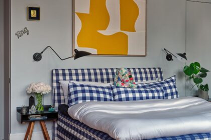 Checks all around, from headboard to dust ruffle...
